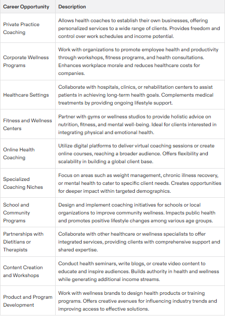 Career Opportunities as a Health Coach