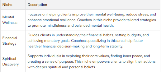 For example, a coach focusing on financial matters assists clients in understanding their monetary behaviors and crafting strategies to achieve fiscal objectives. In parallel, coaches dedicated to spiritual expansion support individuals in uncovering deeper meaning and core values within their lives.