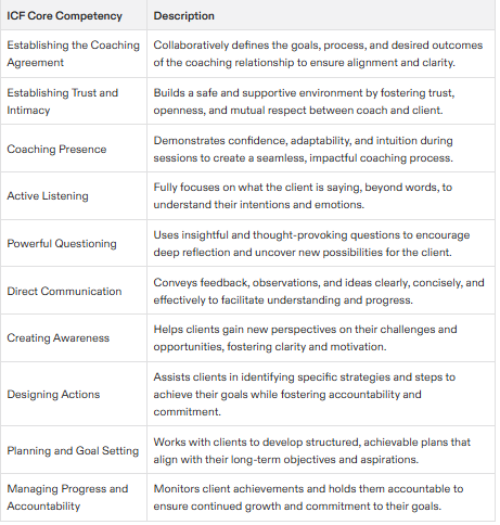 Coaches must demonstrate proficiency in the ICF Core Competencies to earn an ICF credential.