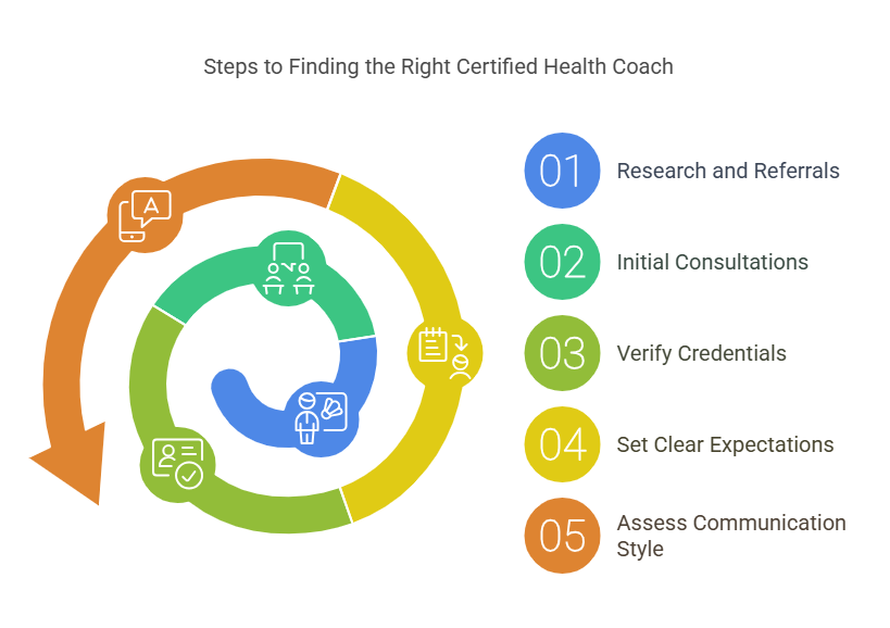 Start by researching certified health coaches in your area or online. Ask for referrals from friends, family, or healthcare professionals who have experience with health coaches. Online directories and professional organizations, like the NBHWC, can also help you find certified coaches.