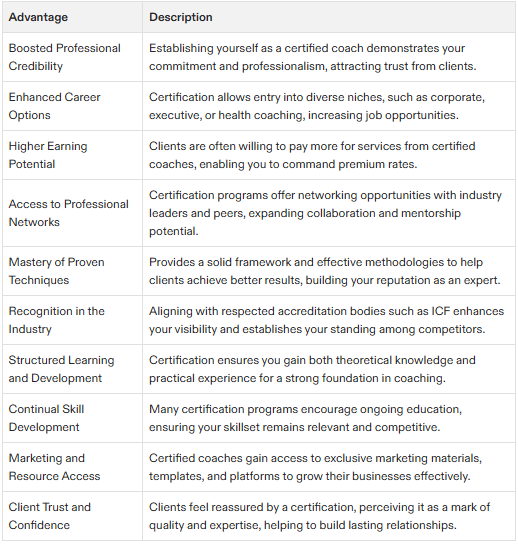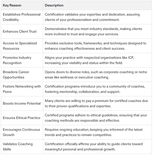 Clients may be more likely to choose a certified coach over a non-certified coach.