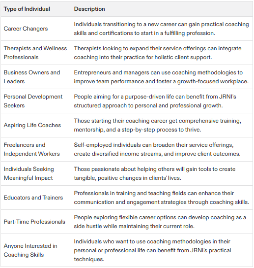 Achieve success and fulfillment as a JRNI life coach and make a positive impact in the world.