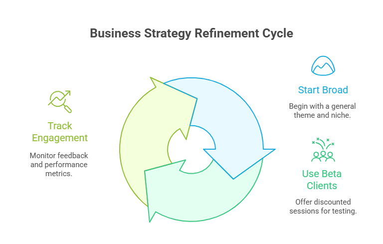 Nothing clarifies your niche faster than coaching real people. Run a beta offer with 3–5 clients at a reduced rate in exchange for honest feedback, transformation stories, and testimonials.
