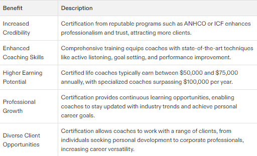 Investing in your certification can lead to a lucrative coaching career, with average earnings ranging from $50,000 to $100,000, fueled by growing demand for life coaches in diverse sectors.