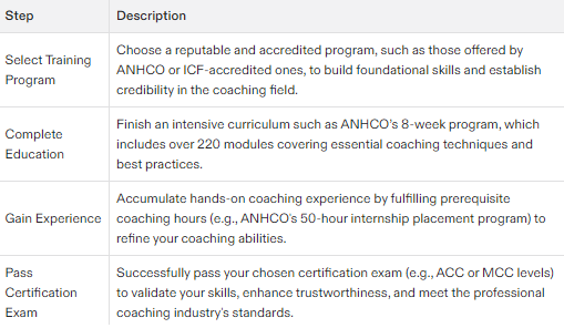 The path to certification includes selecting the right training program, completing essential coaching hours, and passing a certification exam to elevate your credibility.