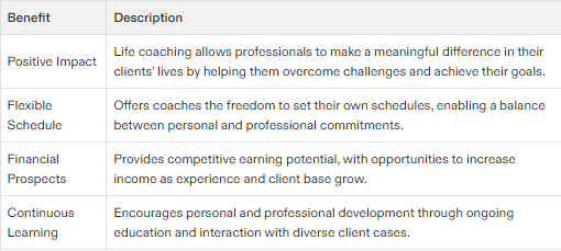 Embarking on a life coaching career offers numerous rewards, both personally and professionally. One of the most fulfilling aspects is the opportunity to make a positive impact on people’s lives, helping them navigate challenges and achieve their goals. As a life coach, you can enjoy a flexible and autonomous work schedule, allowing you to balance your professional and personal life effectively.