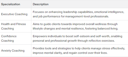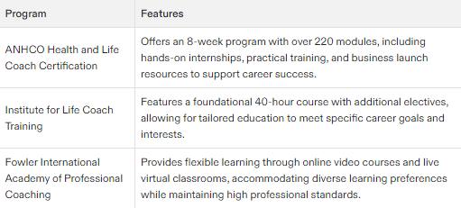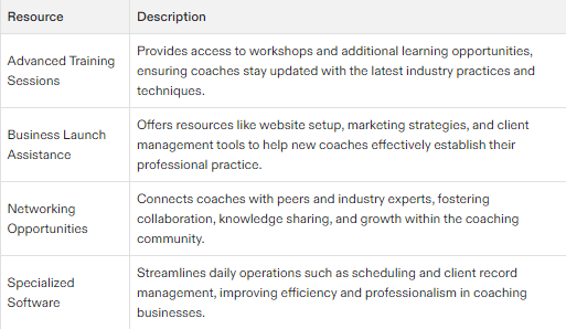 Specialized coaching niches: The program may offer specialized coaching niches, such as health and wellness, relationships, or career coaching.