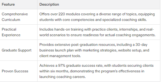 ANHCO provides a comprehensive curriculum and strong post-graduation support, enabling graduates to establish successful coaching practices and secure clients quickly.