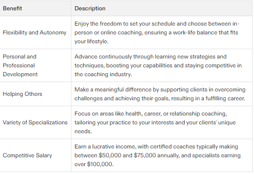 Competitive Salary: Life coaches can earn a competitive salary, with median annual incomes ranging from $40,000 to over $100,000, depending on experience and specialization. This potential for a lucrative income makes life coaching an attractive career option.