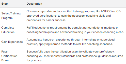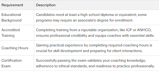 Subsequent to your training, you must garner a designated number of coaching hours and successfully clear an evaluative test to achieve certification. This process guarantees that you are thoroughly equipped to offer proficient coaching services and align with the respected industry benchmarks.