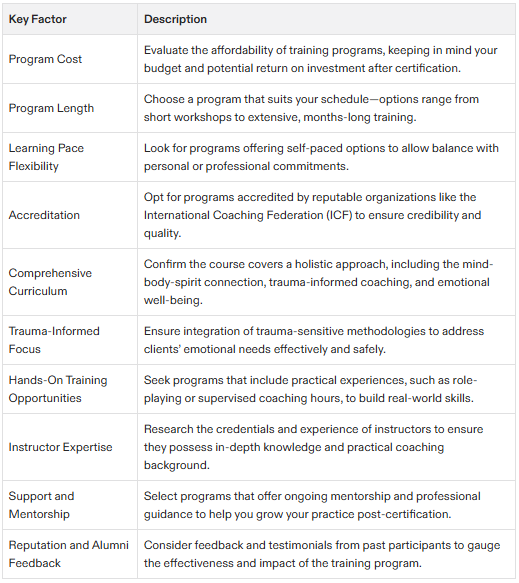 Remember to consider factors such as program cost, course length, accreditation, and holistic approach when selecting a program.
