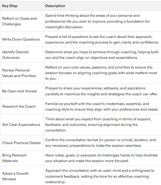 Follow up with the coach after the consultation to ask additional questions or schedule a coaching session.