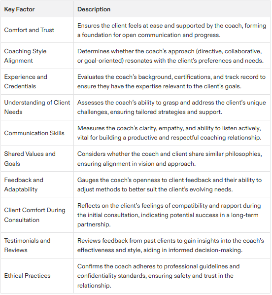 Allows the coach to assess the client’s needs and determine if they are a good fit.