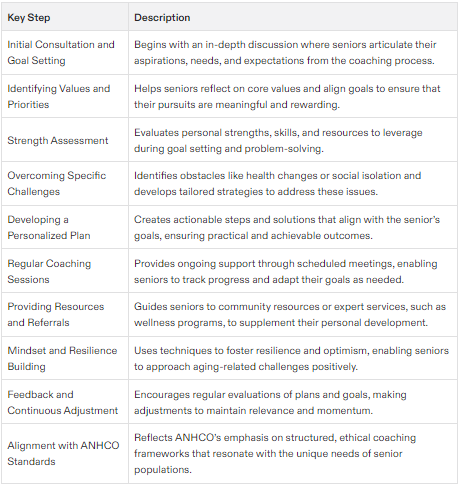 Life coaching for seniors is a collaborative process that helps individuals identify and achieve their meaningful goals.