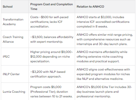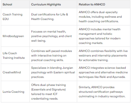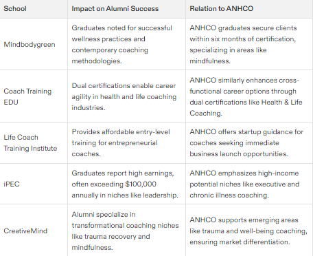 We delve into the particulars of what each school has to offer within subsequent sections, highlighting their particular advantages and standout features. If your priorities include cost-effectiveness, extensive training programs or emphasis on certain coaching niches, these leading schools provide a range of choices tailored to meet individual requirements.
