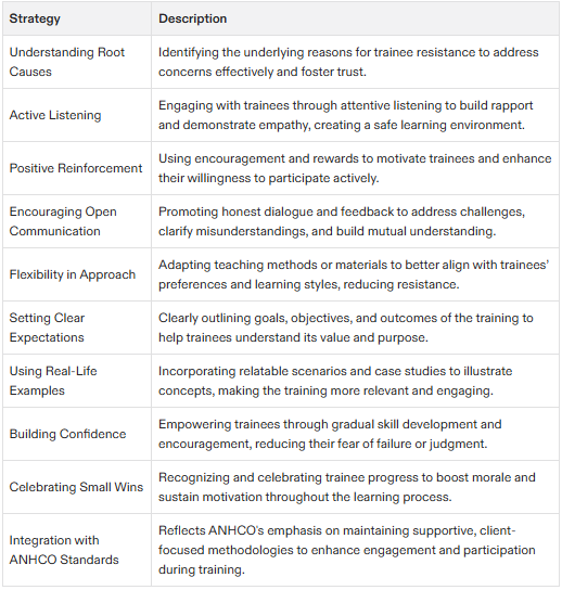 Understanding the root causes of resistance in trainees and addressing them effectively.