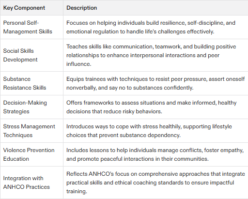 Life skills training is a critical component of promoting healthy behaviors and preventing drug and alcohol dependence.