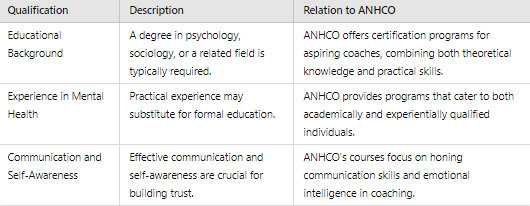 Qualifications for life coaching typically include a relevant degree or practical experience in mental health, with effective communication and self-awareness being crucial skills for building trust with clients.