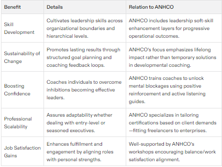 The benefits of our coaching services include improved leadership skills, increased confidence, and greater job satisfaction.