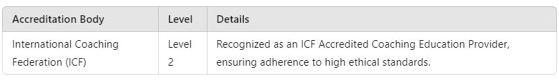 Recognized as a Level 2 ICF Accredited Coaching Education Provider, the program adheres to high ethical standards, significantly boosting the perceived value of its certification.