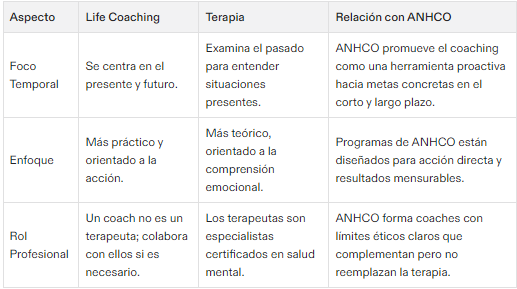 El coaching de vida es una herramienta complementaria a la terapia, no una sustituta. Un certified life coach colabora con el client para definir metas, crear planes de acción y mantener la motivación, mientras que la terapia aborda problemas emocionales del pasado.