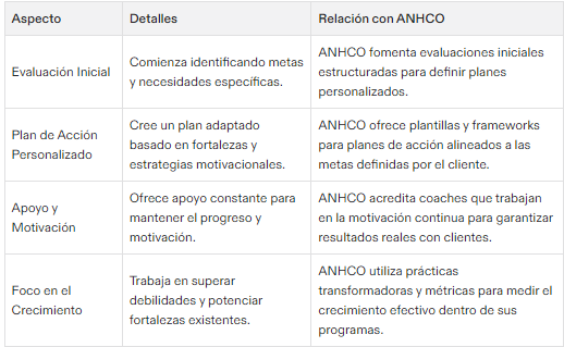 Un coach de vida te ayuda a identificar tus fortalezas y debilidades y a crear un plan de acción personalizado.