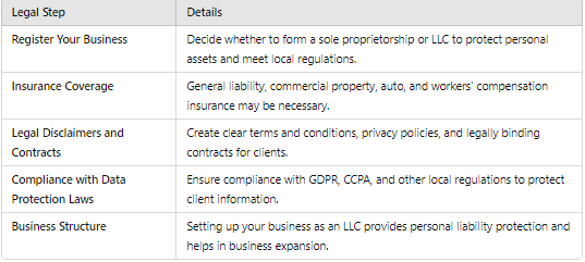 Don’t forget to comply with data protection laws and create clear business terms and conditions.