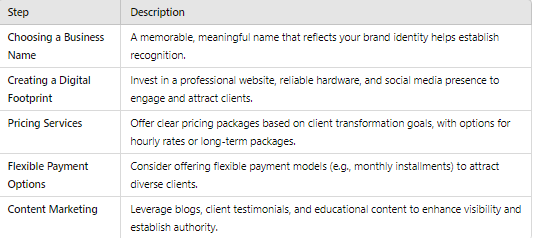 Possessing savvy business skills is crucial when managing and promoting one’s own coaching business efficiently. This encompasses recognizing the ideal target market, formulating effective marketing strategies, and controlling financial aspects of the enterprise. Laying down a robust groundwork ensures both longevity and expansion for your coaching endeavor.