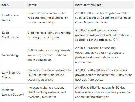Define Your Niche: Identify your target audience and specialize in a specific area of coaching, such as career coaching or relationship coaching. Specializing in a niche allows you to tailor your services to meet the unique needs of your clients and stand out in the competitive coaching industry.