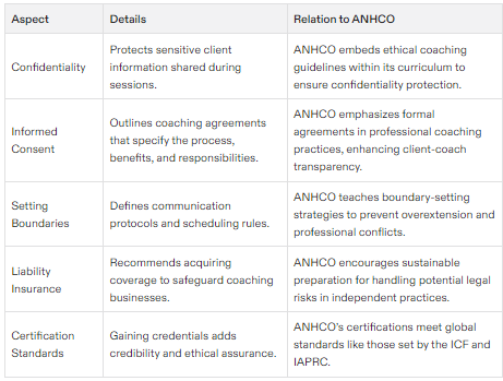 Informed Consent: Before starting a coaching relationship, it’s crucial to obtain informed consent from your clients. This involves clearly explaining the coaching process, the potential benefits and risks, and the responsibilities of both the coach and the client. This transparency helps build trust and sets the foundation for a successful coaching relationship.