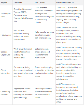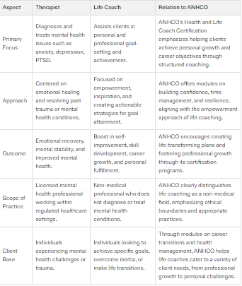 While therapists possess proficiency in identifying and addressing mental health issues through treatment plans, life coaches concentrate on offering guidance aimed at achieving specific goals alongside supportive measures tailored for individuals seeking direction.