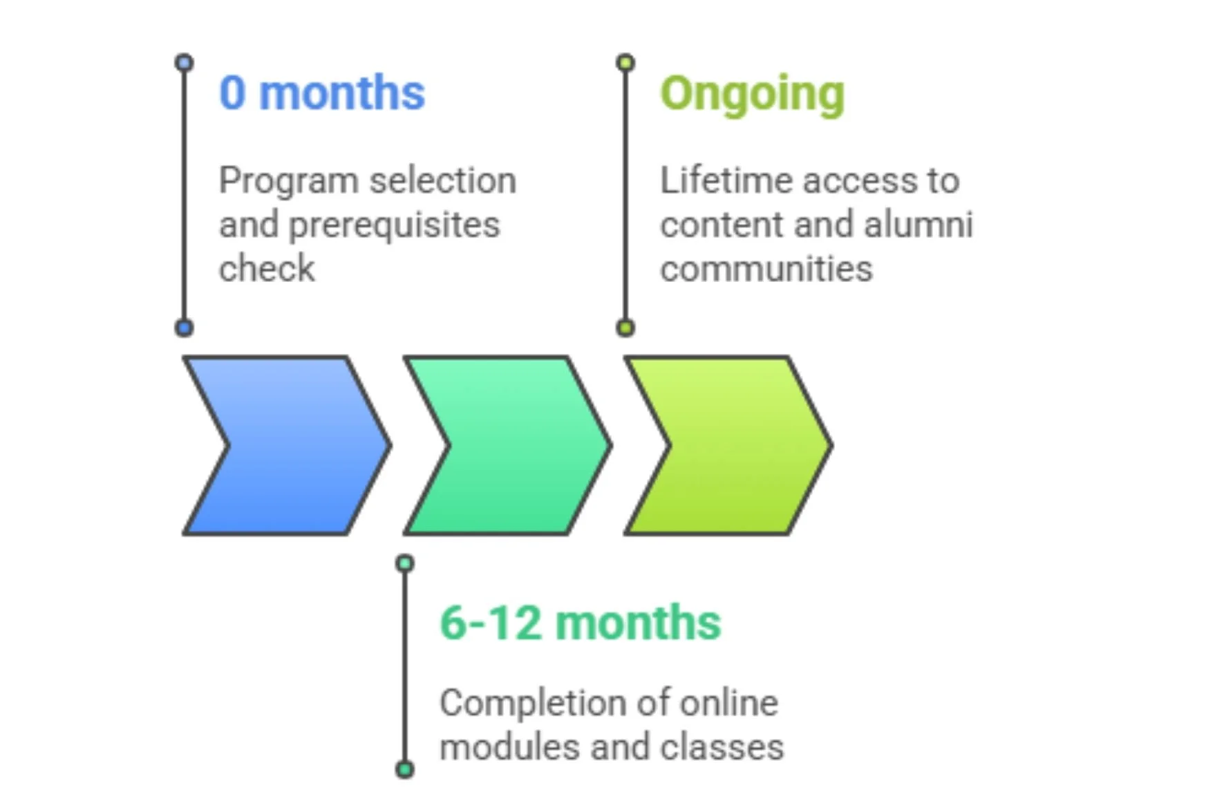 Certification programs typically span 6 to 12 months, depending on your pace. You’ll complete: