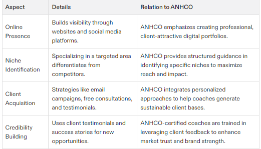 Develop a strong online presence: Create a professional website and social media profiles to showcase your coaching services and connect with potential clients.