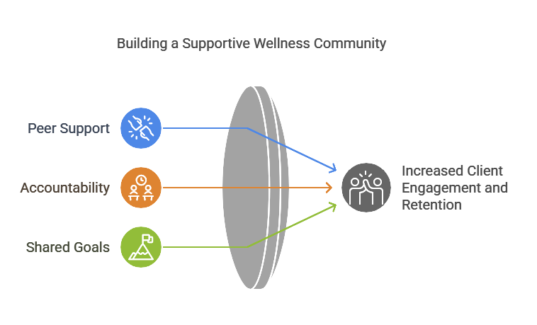 Accountability: Regular group meetings create a sense of responsibility. Knowing they will update others helps clients stay motivated and stick to their health routines.