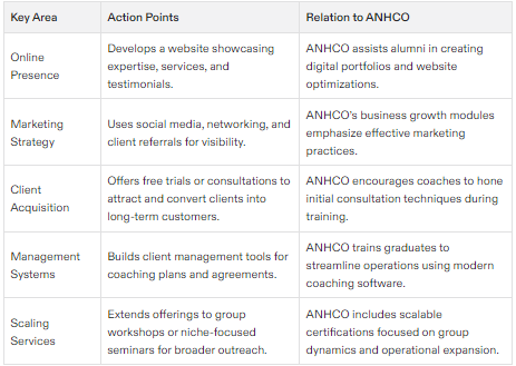 Focus on Building a Loyal Client Base: Providing exceptional coaching services should be your top priority. Building strong coaching relationships and maintaining a personal coaching presence will help you retain clients and gain referrals.