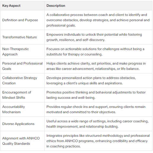 It is a process that empowers clients to identify and overcome obstacles, develop strategies, and create a plan to achieve their desired outcomes.